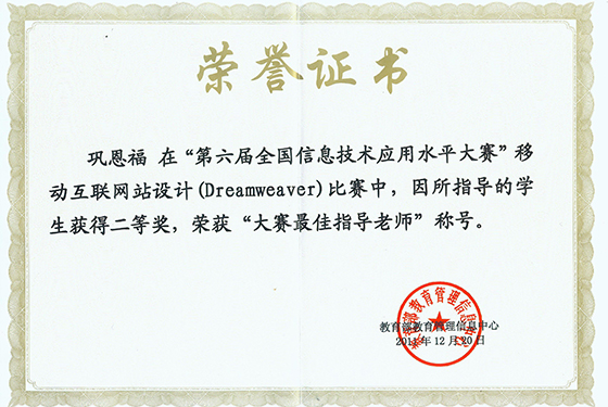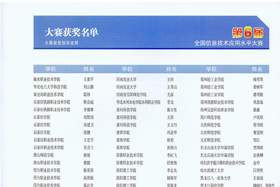 2011年12月20日上午,第六届全国信息技术应用水平大赛获奖名单公布,协会会员城轨控制09A1班崔灵参加“移动互联网站设计(Dreamweaver)”赛项获得了全国二等奖的好成绩。