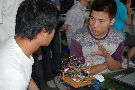 本次考核主要分为两组进行,在近半个小时的准备后,第一组会员进入考核区参加相关考核。大家在各自的位置上认真构思着程序的编写流程,尽量把每一个程序以简单的思路表述出来,争取把自己近段所学的知识通过作品展示出来。学单片机的会员按要求做出了相关作品,其中有些作品相对完美;学网站的会员也对近期所学flash做出了一些动画。