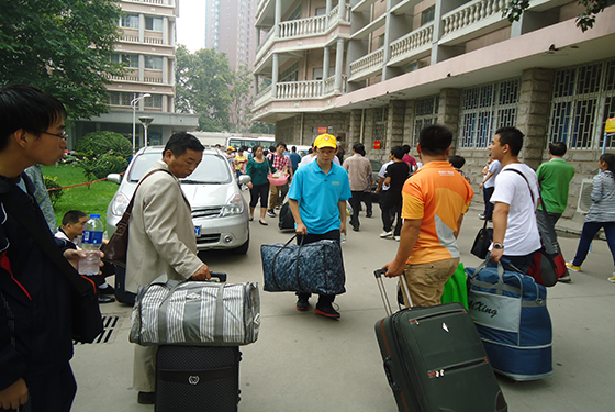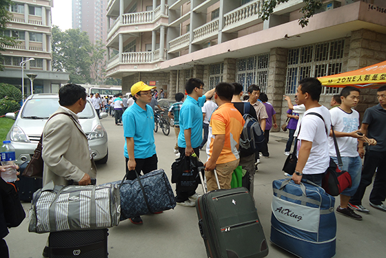 会员热心的给新生提行李、拎包裹