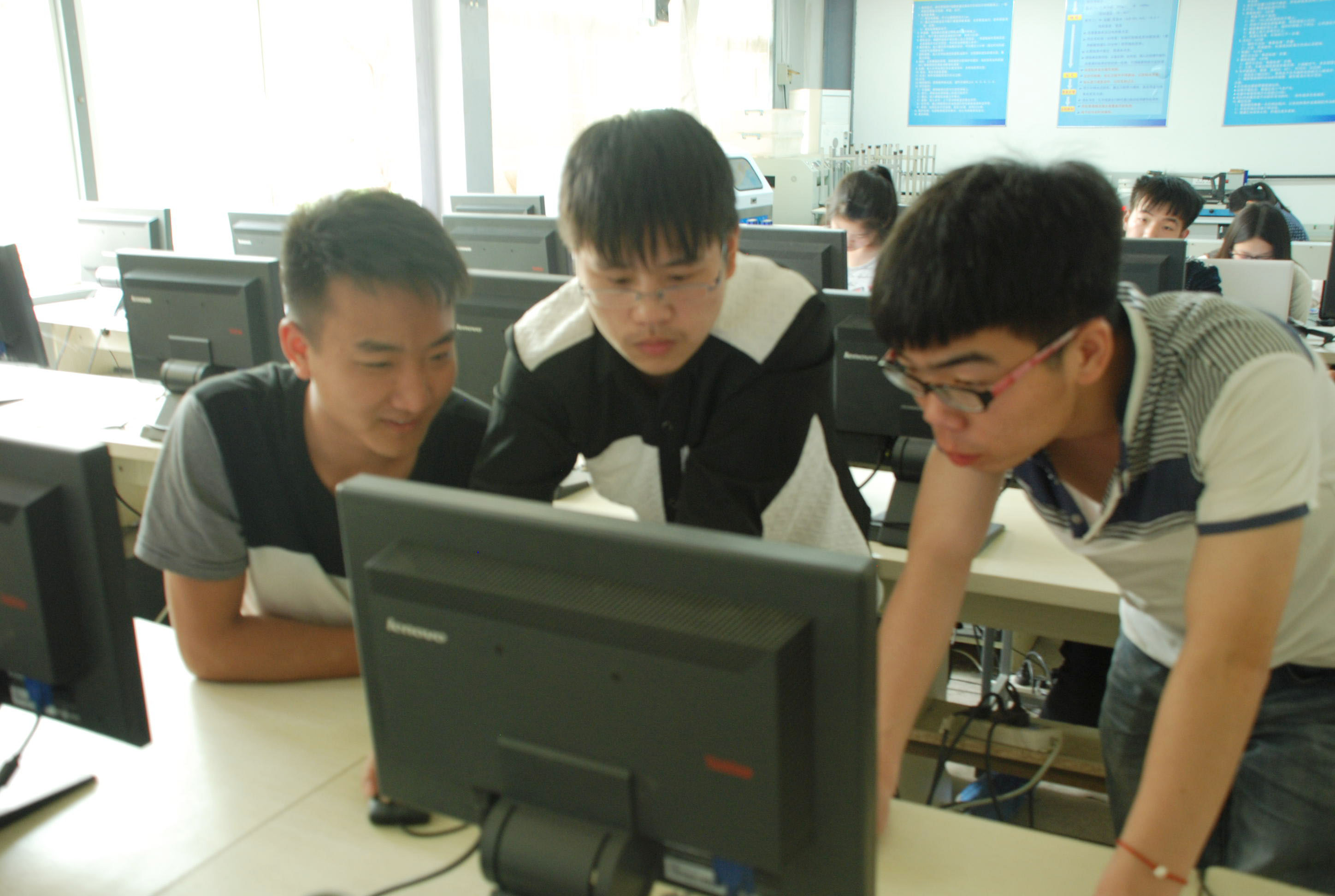 考核紧张而有序的进行着,一起合作的会员一人负责解说软件设计,一人负责展示硬件作品。