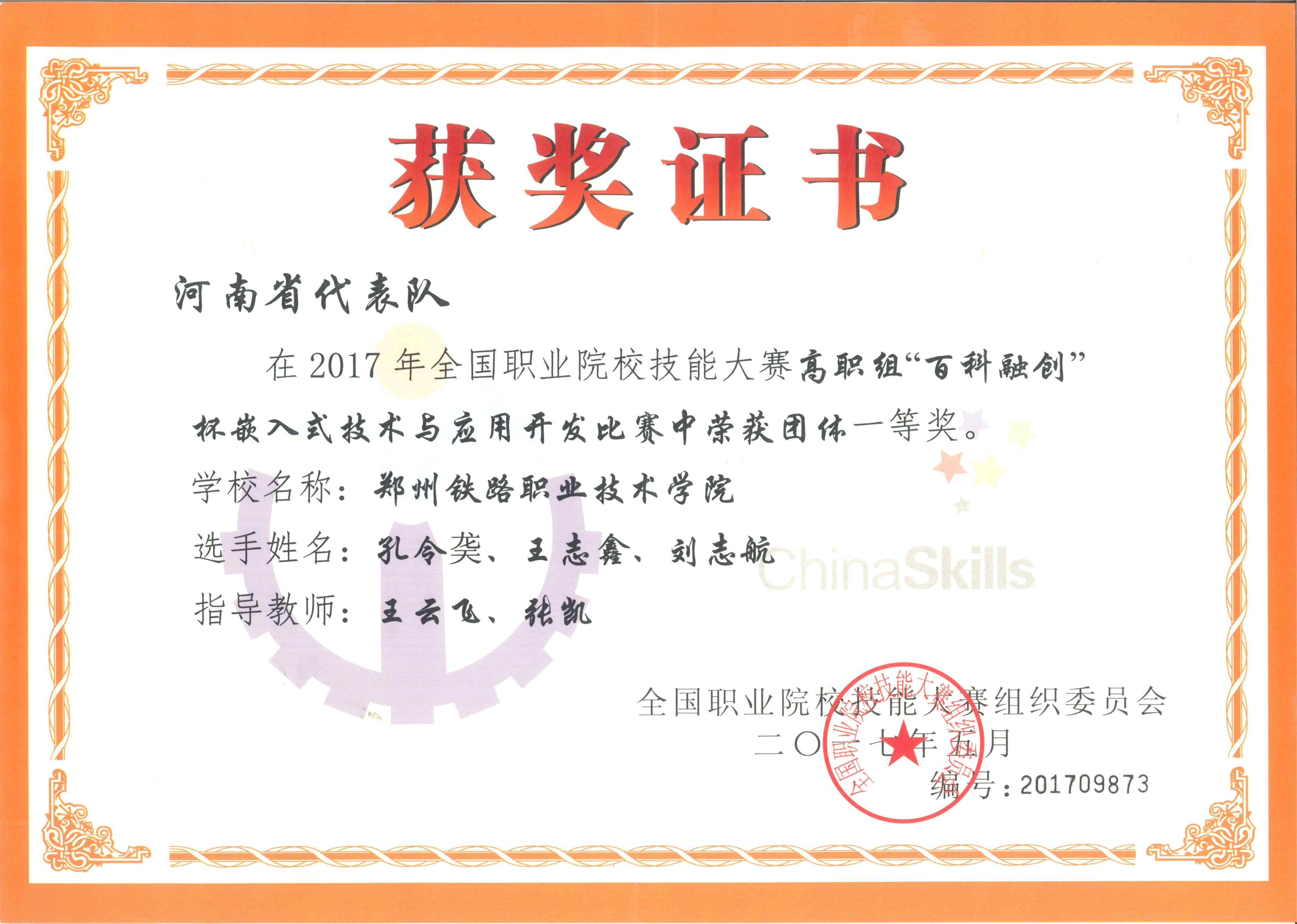 6月4日从全国职业院校技能大赛组委会传来喜讯,郑州铁路职业技术学院由无线电协会会员孔令䶮、王志鑫、刘志航3位同学组成的代表队,在指导教师王云飞,张凯的精心指导下,参赛选手沉着应战,经过奋力拼搏,在众多选手中脱颖而出勇夺全国高职组团体一等奖。