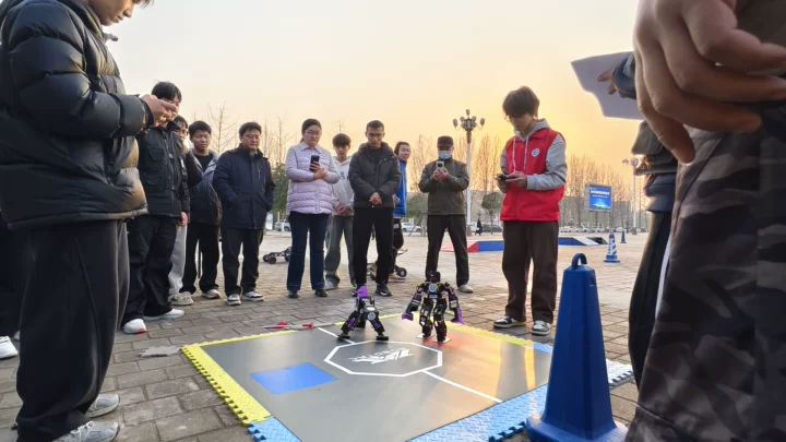 对抗赛现场,选手操控机器人一对一角逐,抢高地、推火种等战术轮番上演,三分钟赛程节奏紧凑,速胜倒计时环节点燃全场氛围。竞速赛道上,机器人需穿越锥桶、斜坡障碍并折返完成任务,选手精准操控下的每一次成功过障,都赢得观众阵阵掌声。人形功夫搏击赛中,击打,锁喉等招式精彩呈现,最后30秒不限攻击方式的规则让赛事氛围推向高潮。